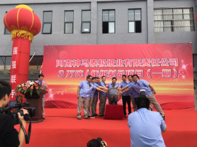 2017年9月29日,河南神马星空(中国)纸业有限责任公司一期投产仪式隆重举办,这是神马集团和星空(中国)集团强强联手,谱写新的篇章的起点,这是信任的延伸和升华,是融合双方资源,实现资源互补,年产值将达到3万吨的生产规模。星空(中国)将以精湛的技术、卓越的产品、真诚的态度、一流的服务,打造中原地区最大的化仟纸管、工业纸管、纸质蜂窝板的生产商。此次开业投产仪式,是全新的起点,神马星空(中国)将扬起风帆,快速驶进市场经济的大潮。